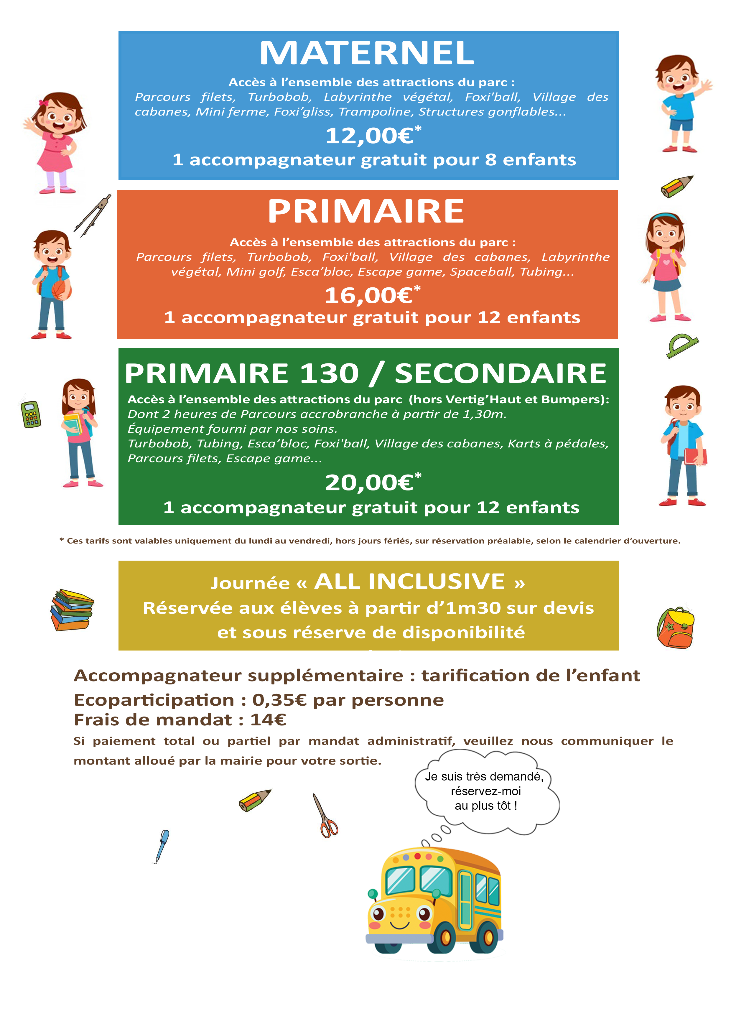 Pour toute modification de réservation merci de ne pas refaire une demande de devis en ligne mais un e-mail à scolaires@aventureland.fr.