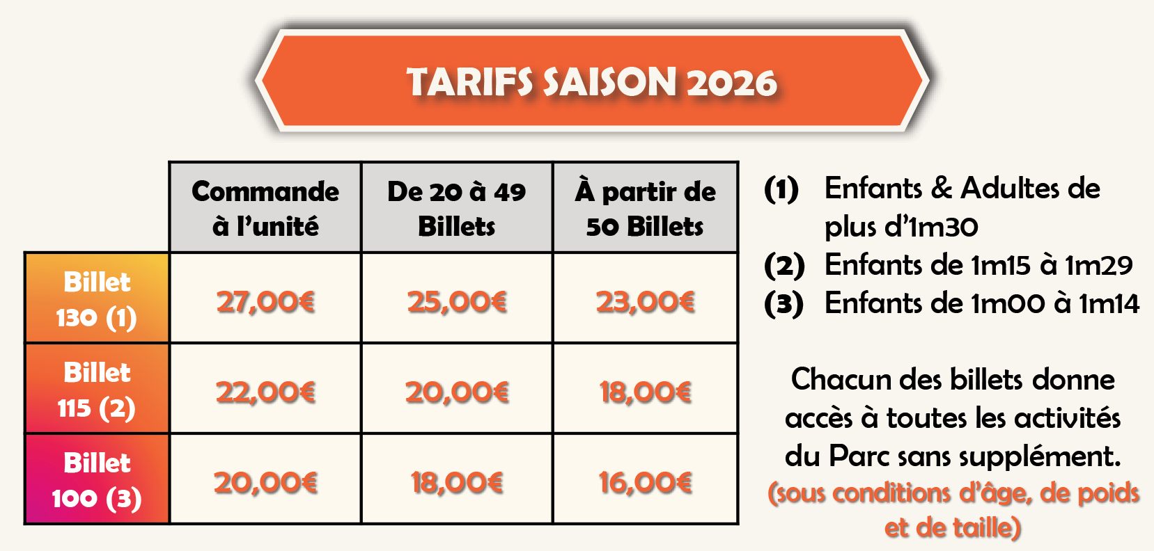 *Billet 1 jour , donnant l’accès à l’ensemble des attractions du parc. Un justificatif relatif à l’âge peut vous être demandé en caisse